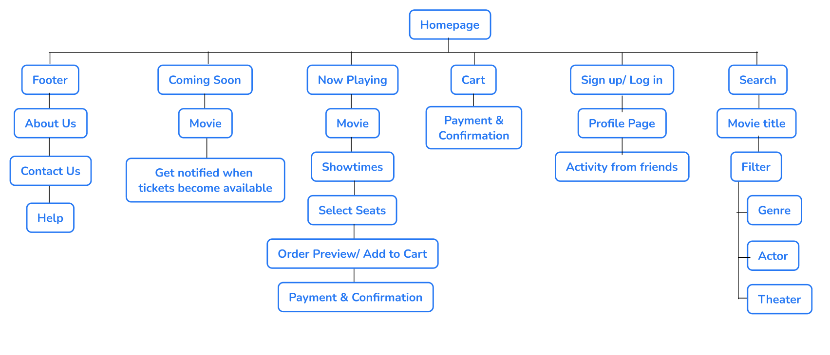 I wanted to be strategic about the layout of the Movietime website– ticketing websites need to display a lot of information, and I didn’t want users to be confused or overwhelmed by the layout.